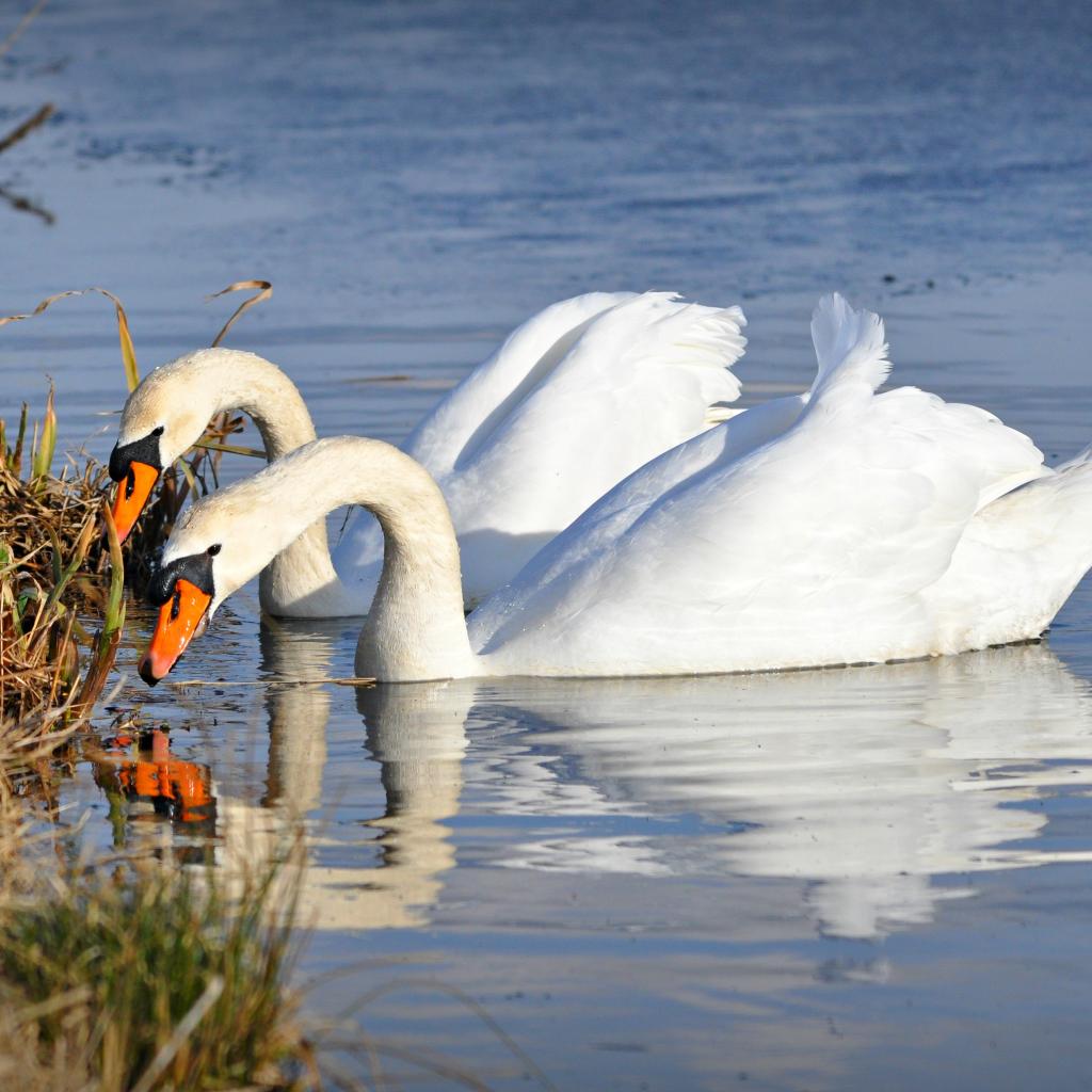 Wallpaper Two beautiful white swans near the shore