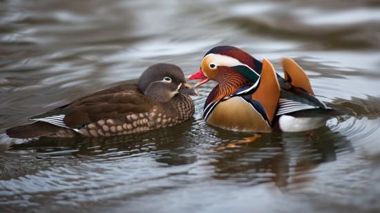 Wallpaper Two duck mandarins in the water