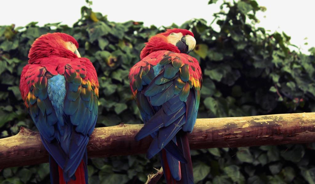 Wallpaper Two macaw parrots sitting on a branch