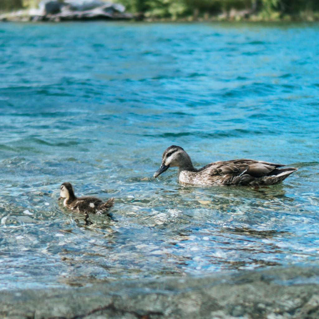 Wallpaper Duck with a little duckling in the water
