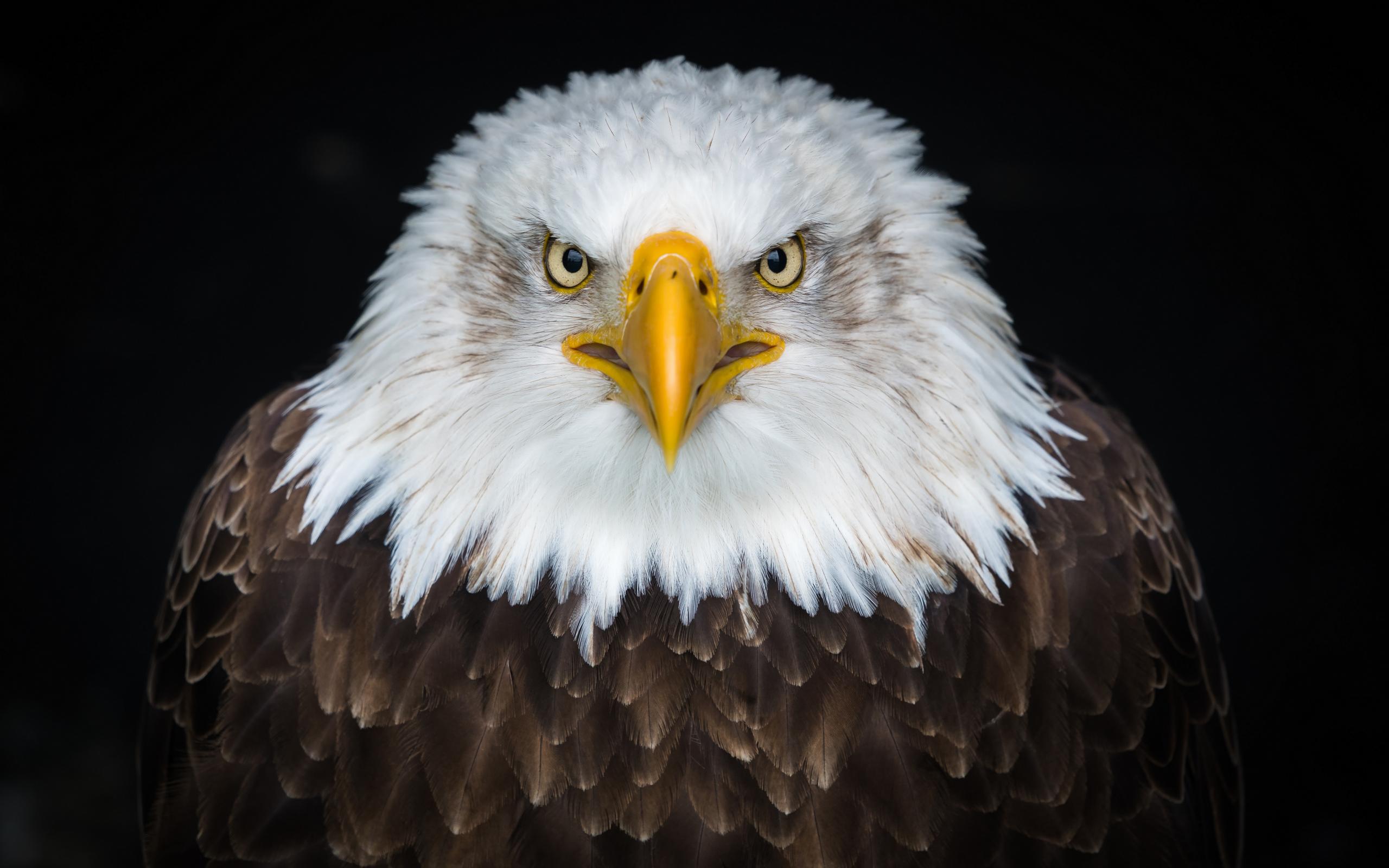 Wallpaper Bald eagle with a sharp beak on a black background