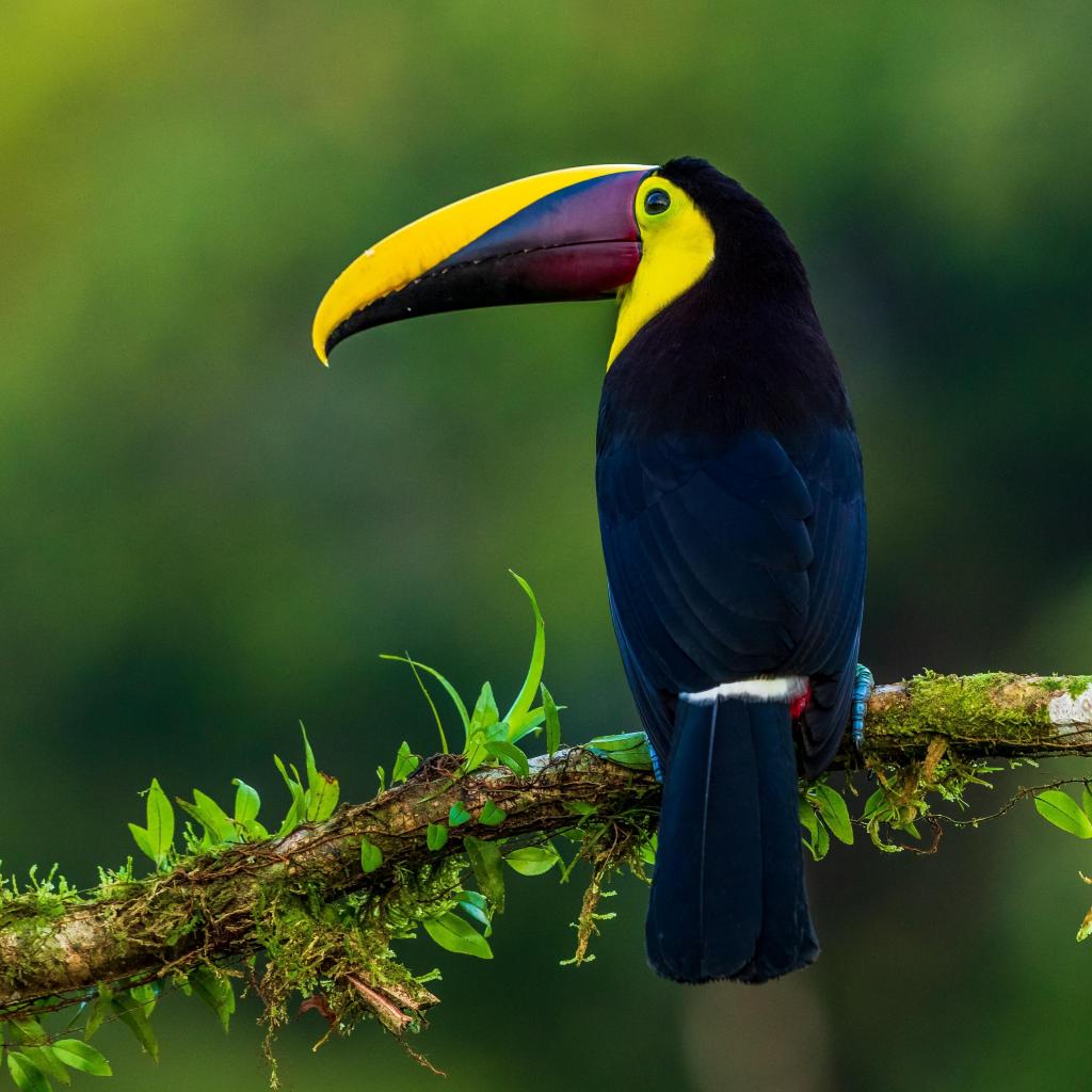 Wallpaper Large multi-colored toucan sitting on a branch