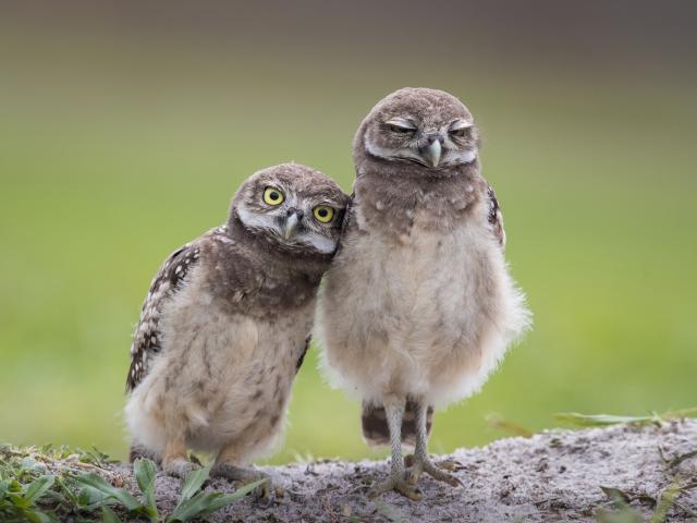 Wallpaper Two little owls are on the ground