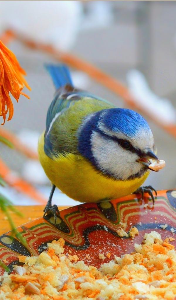 Wallpaper Little tit pecks crumbs