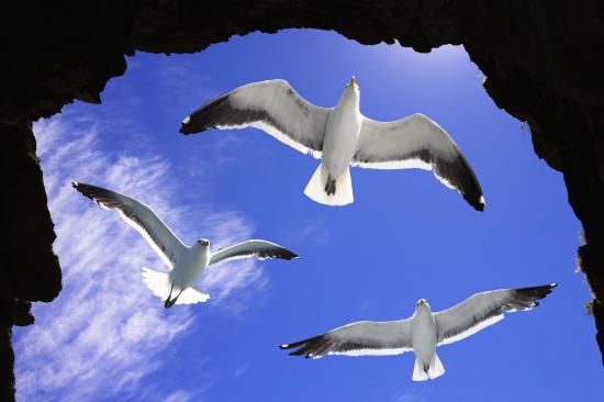 Wallpaper Three white seagulls in the blue sky