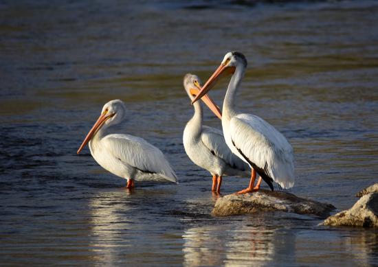 » Wallpaper Three large pelicans in the water