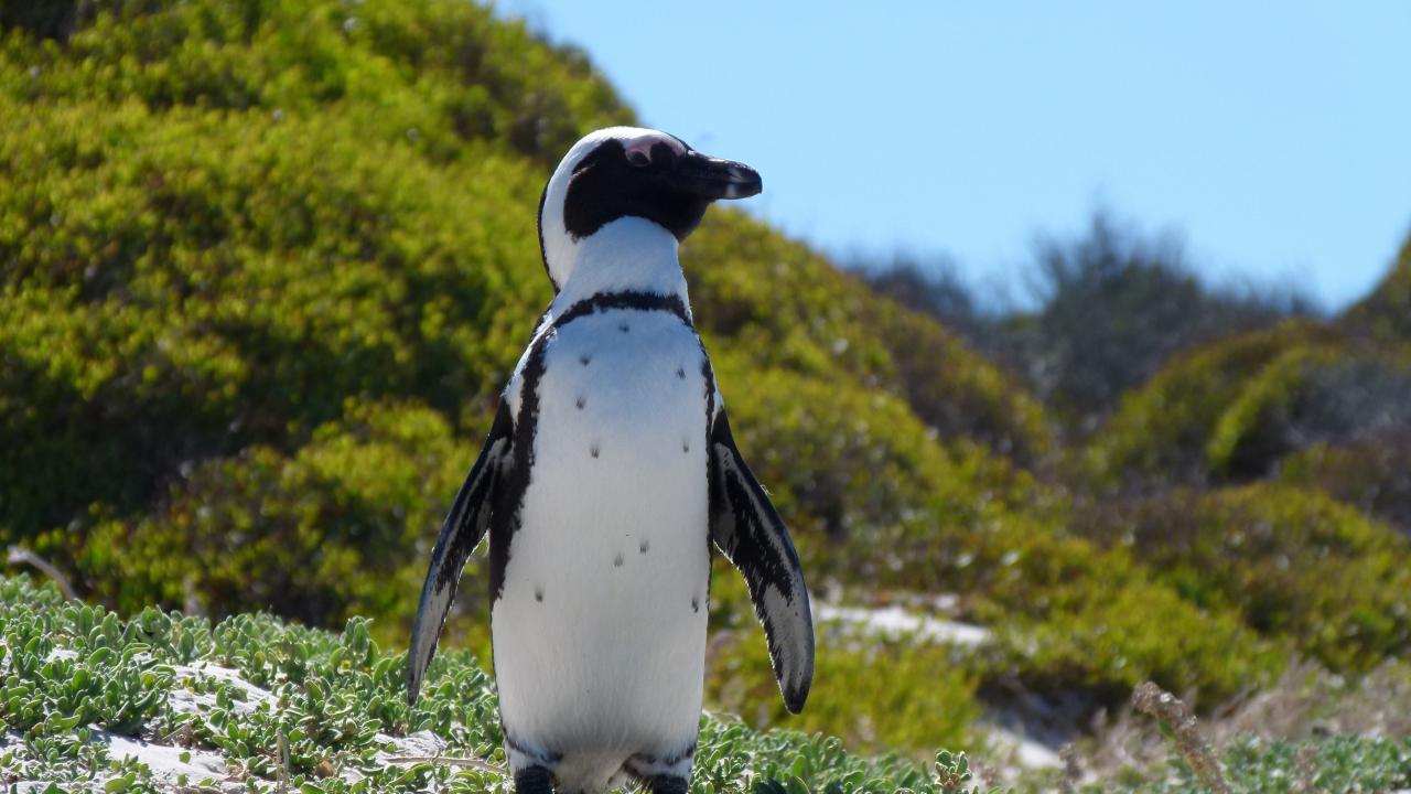 Wallpaper Big penguin stands on the green grass