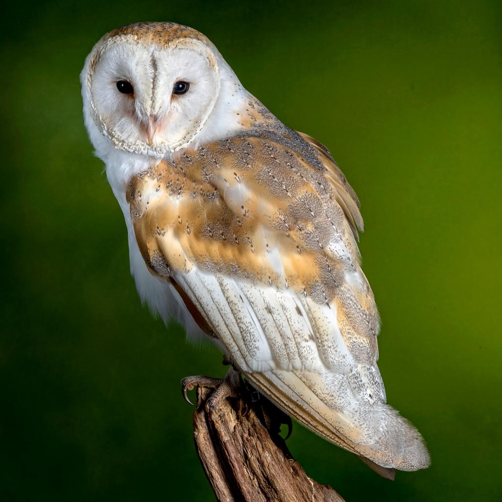 Wallpaper Big owl sits on a tree on a green background