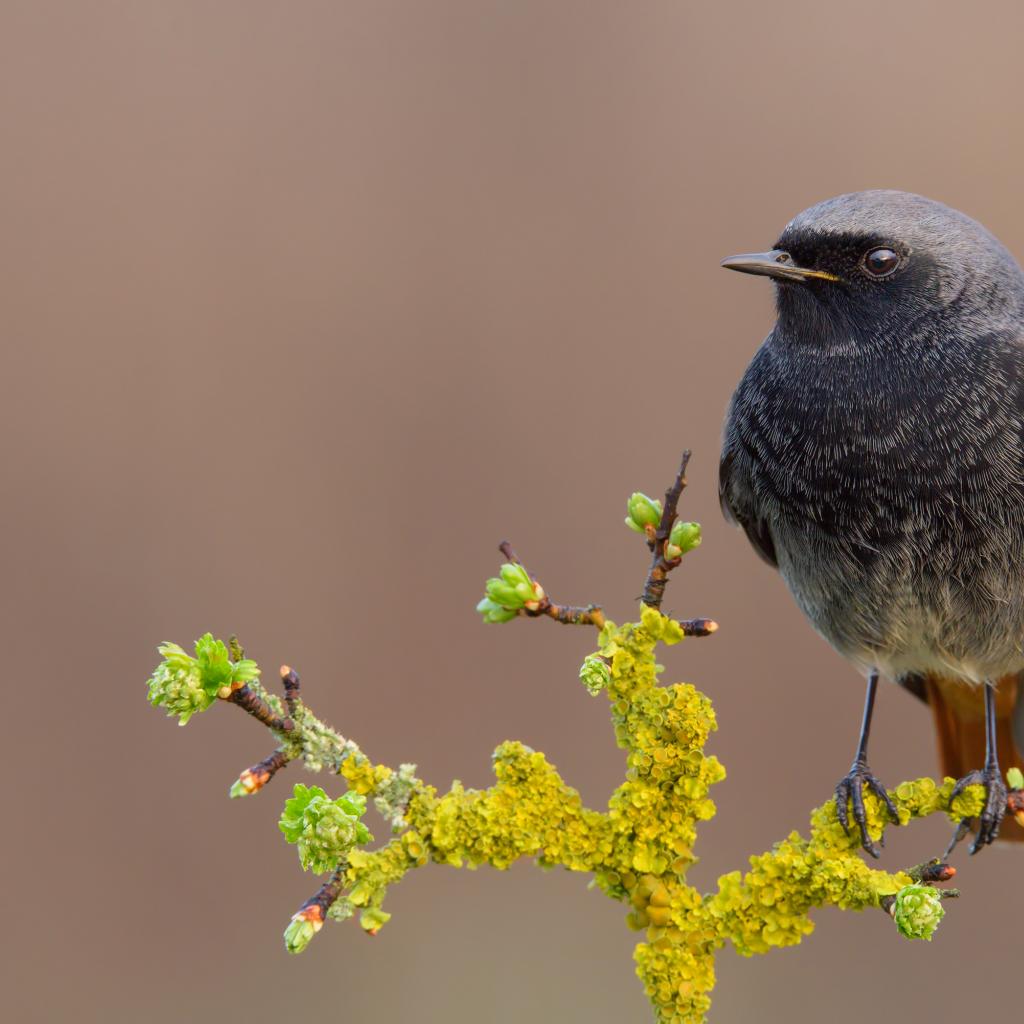 Wallpaper Little bird sitting on a branch with yellow leaves