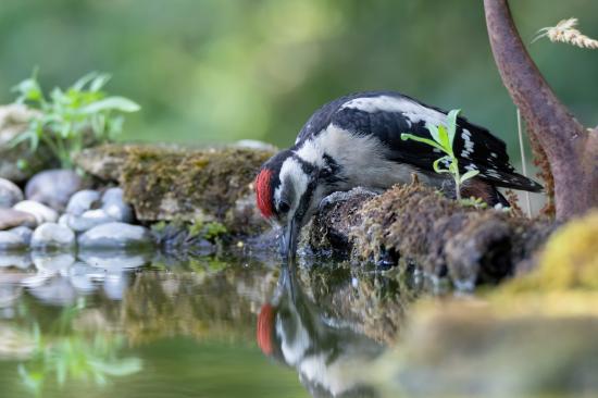Wallpaper Woodpecker drinks water from a pond