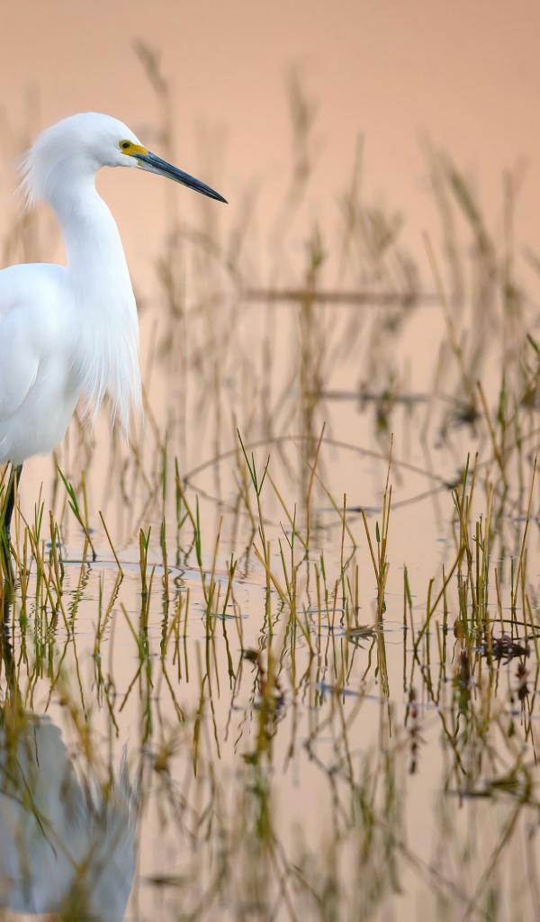 Wallpaper Great white heron in the water on the hunt