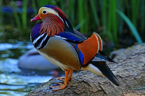 Wallpaper A multi-colored mandarin duck sits on the lake