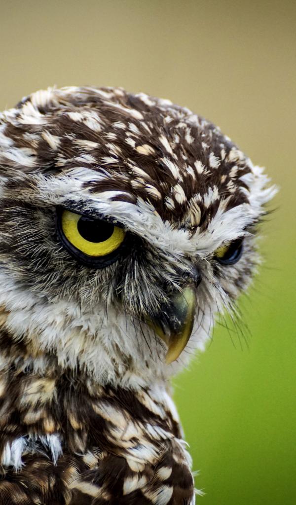 Wallpaper Head of a big owl with yellow eyes close-up