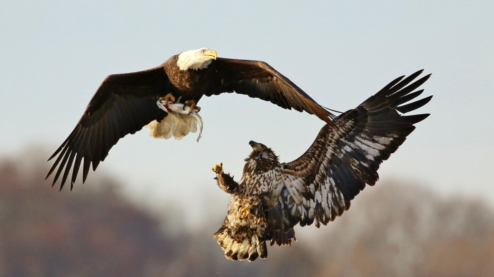 Wallpaper Two birds of prey fight in the air