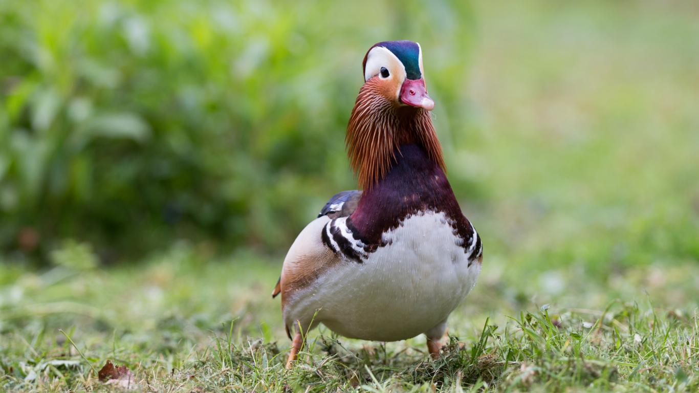 Wallpaper Cute duck mandarin duck walks on the grass