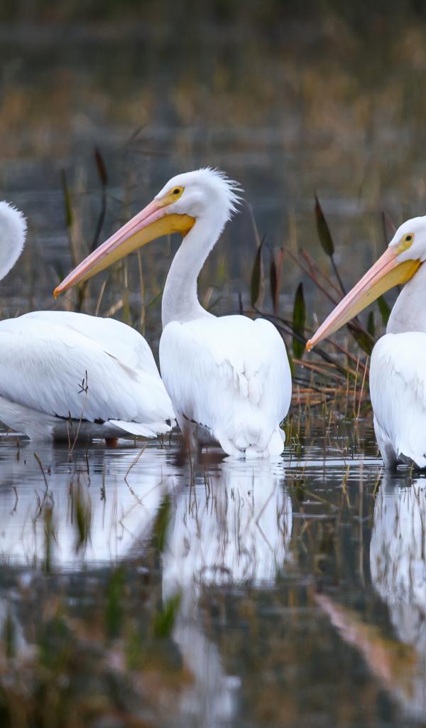 Wallpaper Three white herons hunt in the water