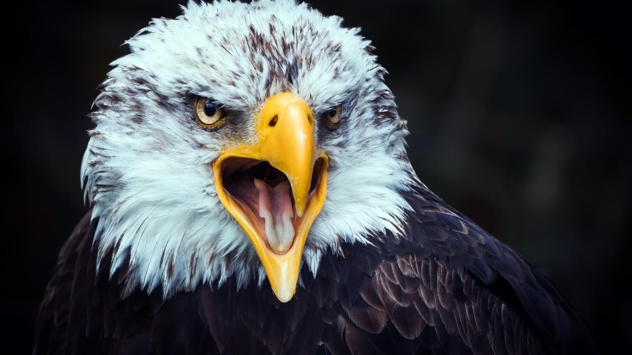 Wallpaper Terrible bald eagle with an open beak