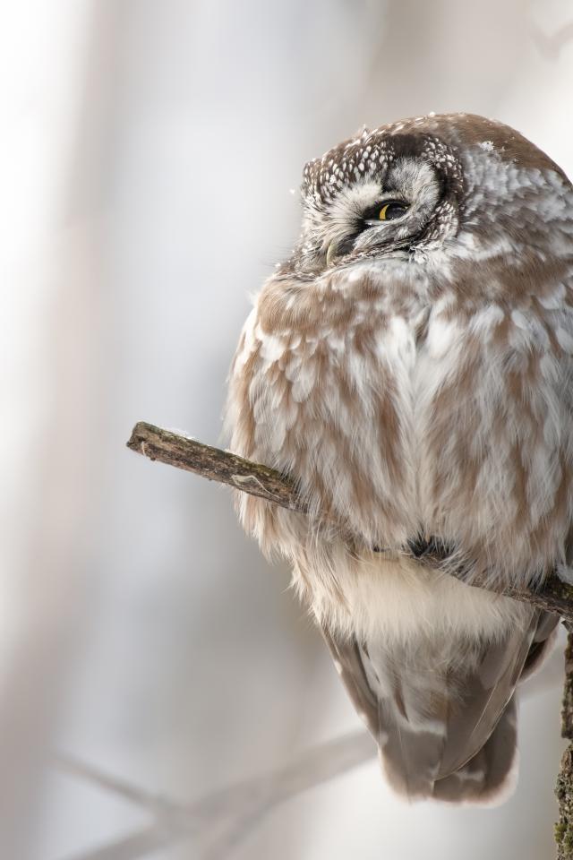 Wallpaper Owl sleeping on a tree branch