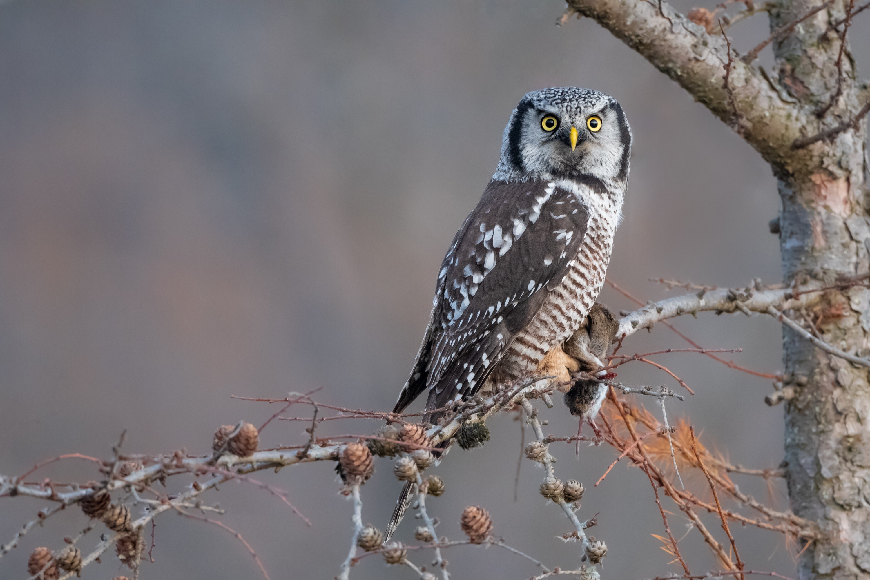 Wallpaper Big owl sits on a branch with prey