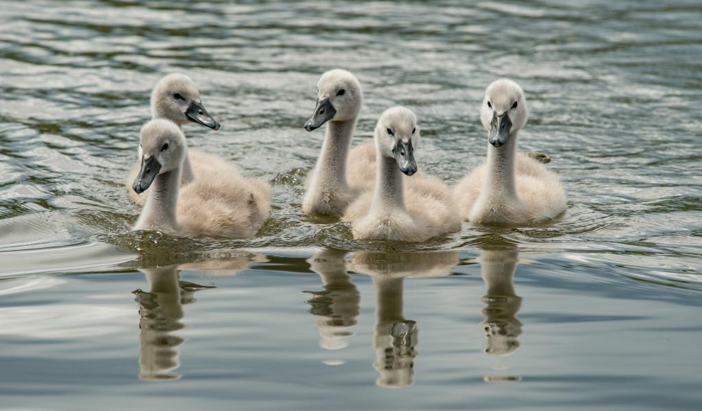 Wallpaper Little wild swans in the water
