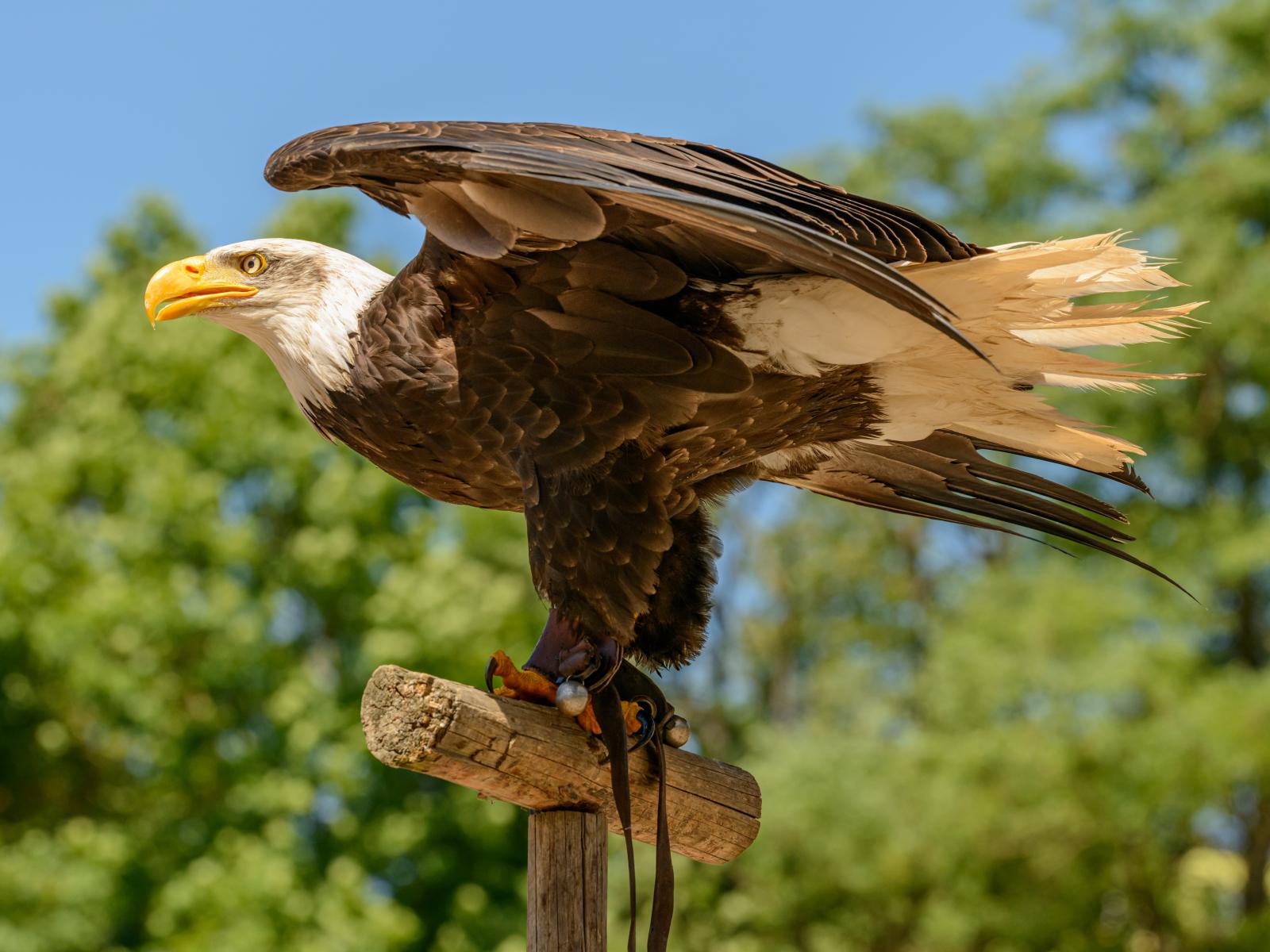 Wallpaper Owl spread his wings on the background of a coniferous tree