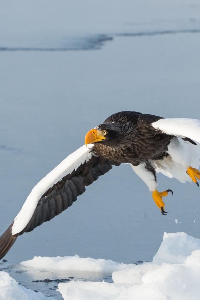 Wallpaper Large bird of prey above the frozen river