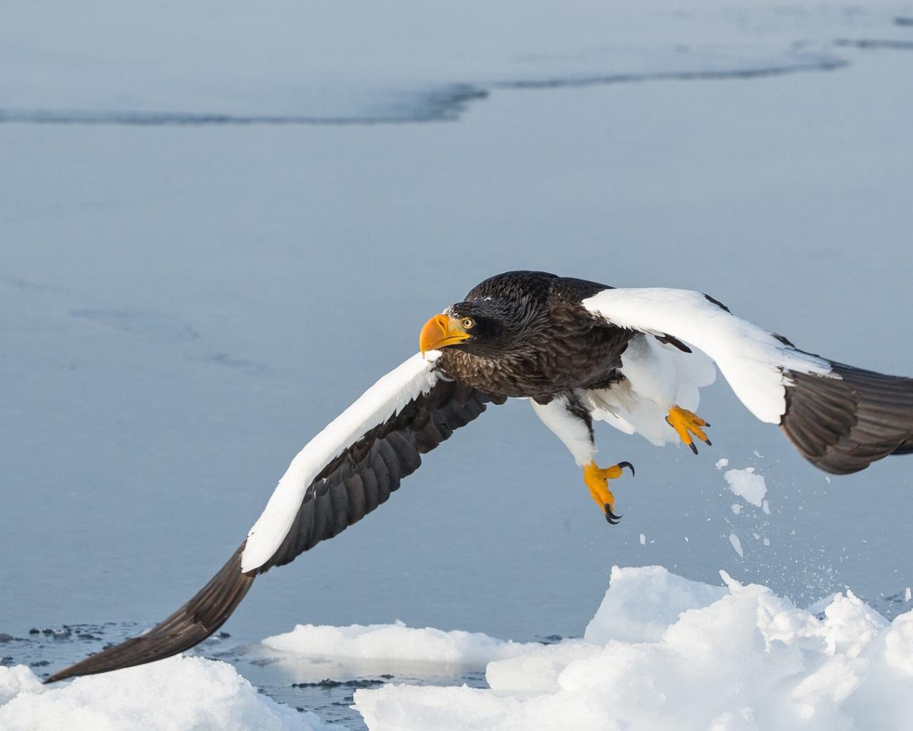 Wallpaper Large bird of prey above the frozen river