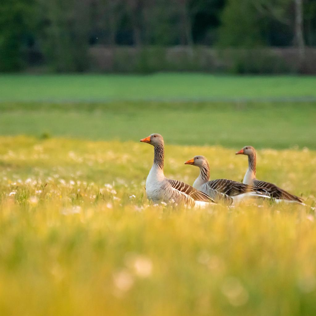 » Wallpaper Three geese on green grass