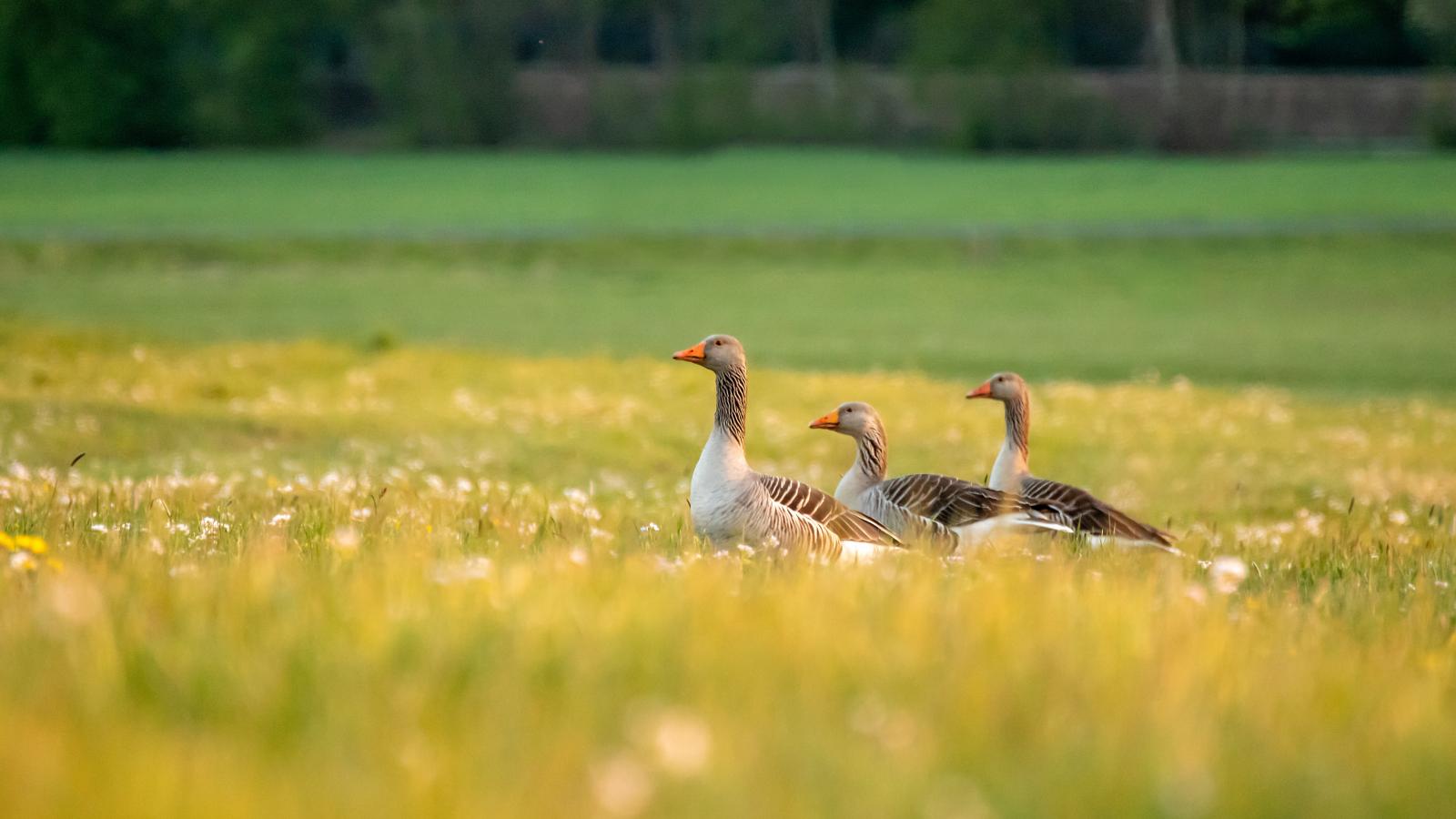 » Wallpaper Three geese on green grass