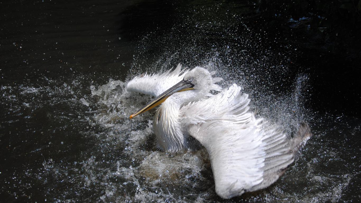Wallpaper Large white pelican splashing in the water