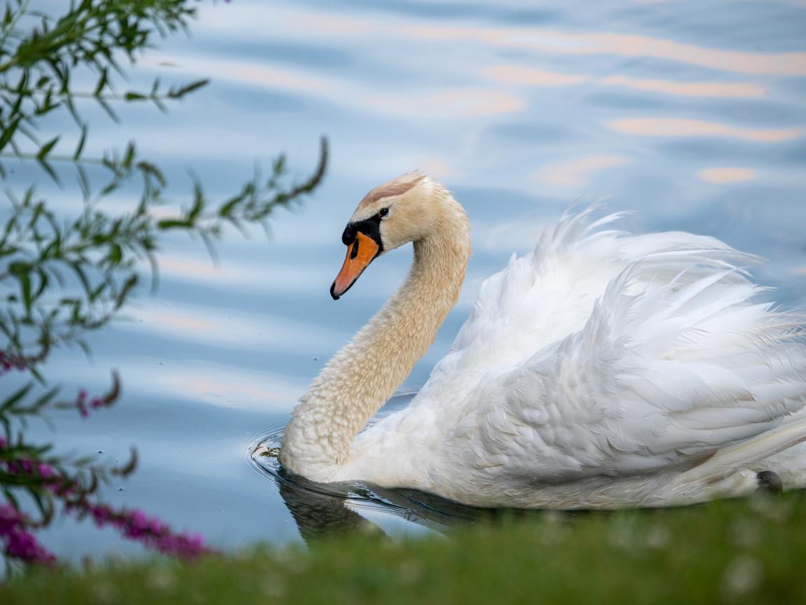 Wallpaper Beautiful white swan on the shore of the pond