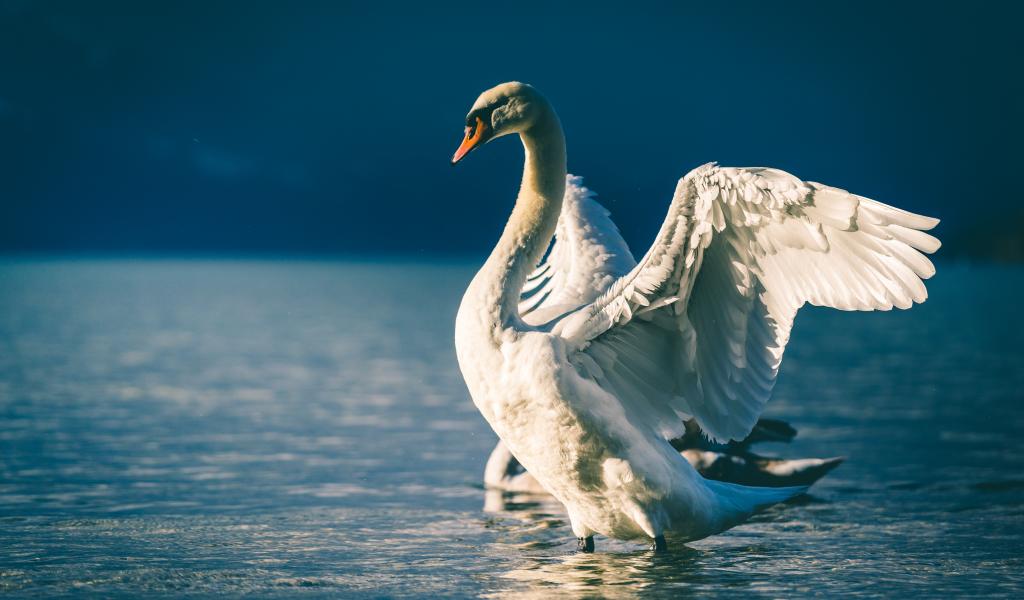 Wallpaper The swan spread its wings in the pond