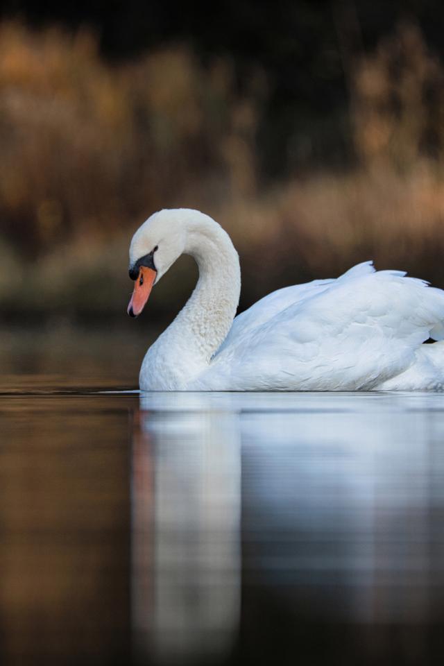 Wallpaper Beautiful white swan in the calm water of the lake