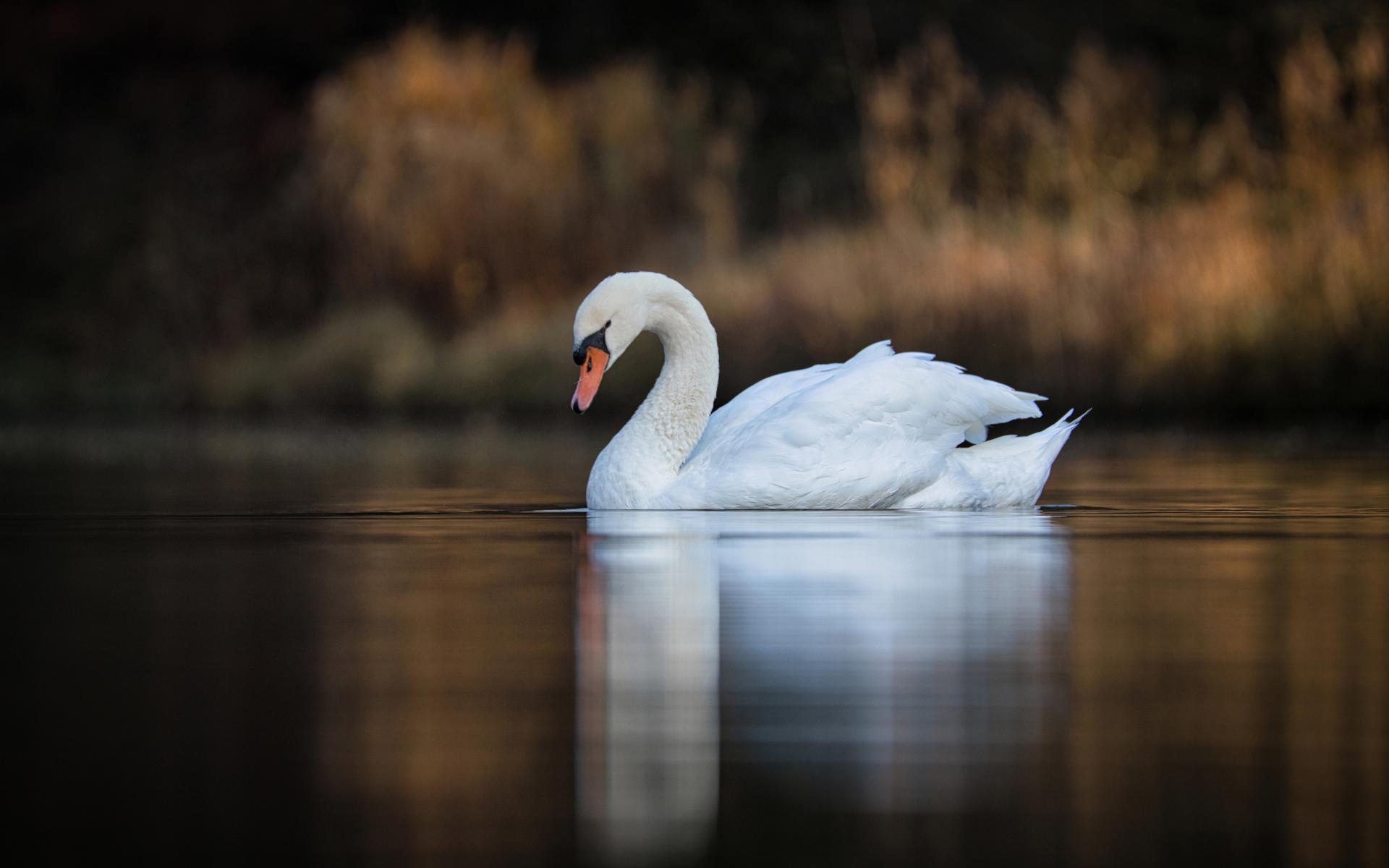 Wallpaper Beautiful white swan in the calm water of the lake