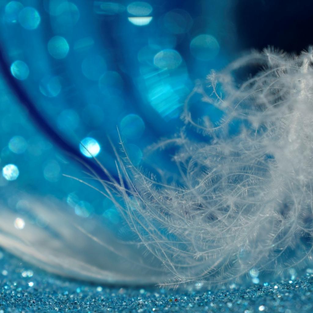 Wallpaper White light feather lies on a shiny blue surface