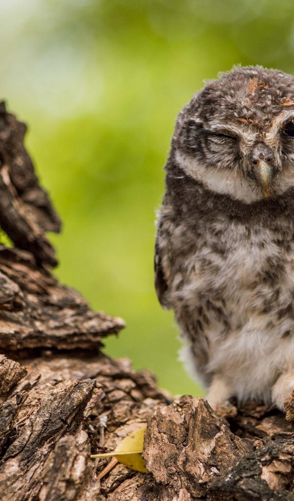 Wallpaper Owl winks on a tree