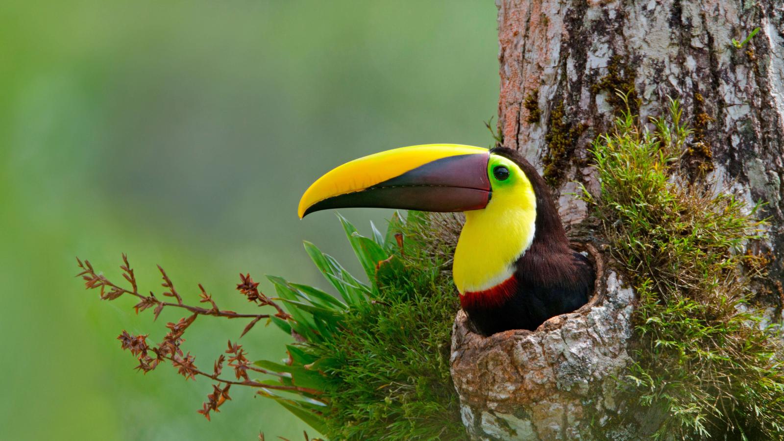 Wallpaper Toucan with a long beak in the nest