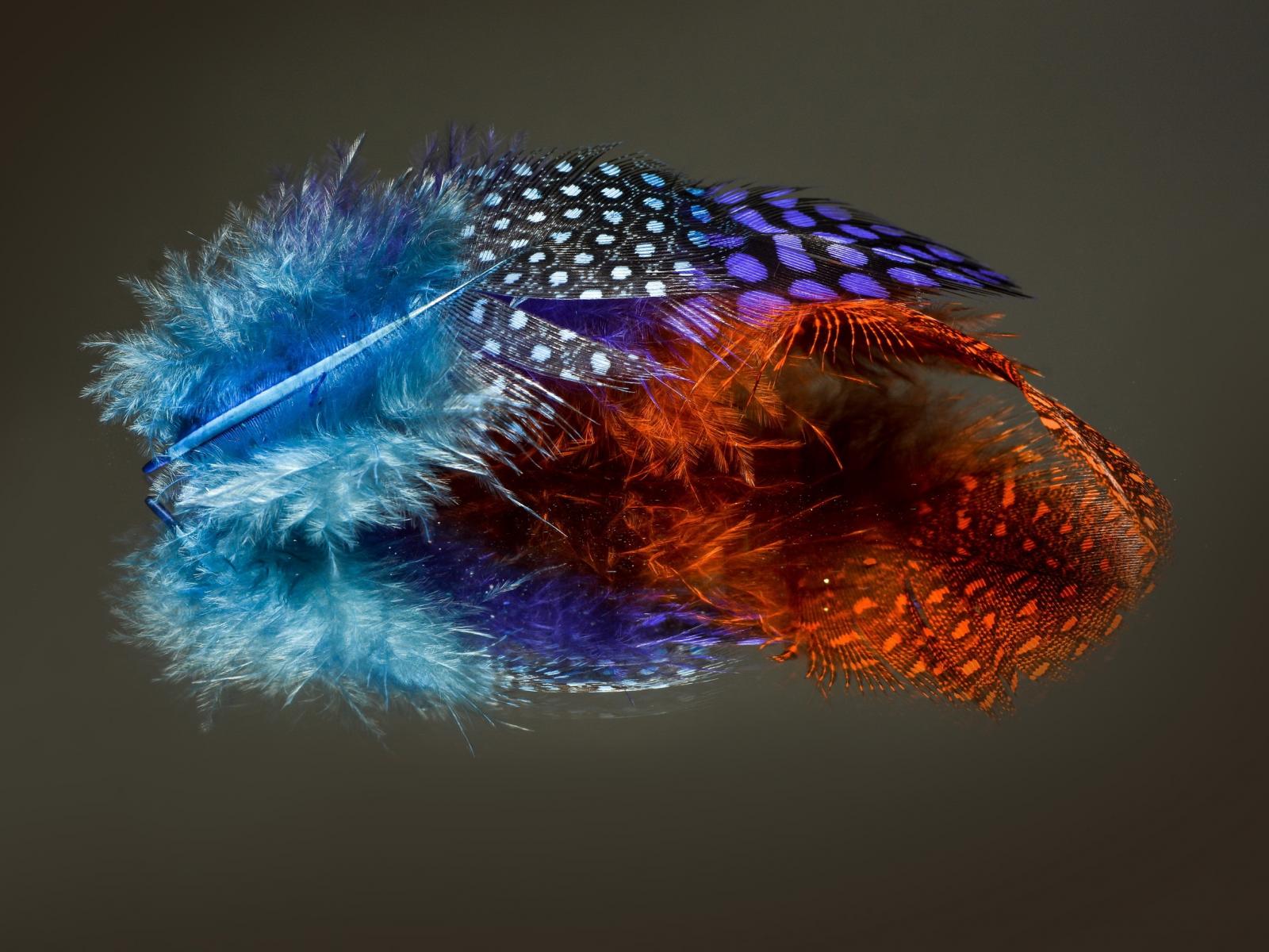 Wallpaper Multicolored feathers on gray background