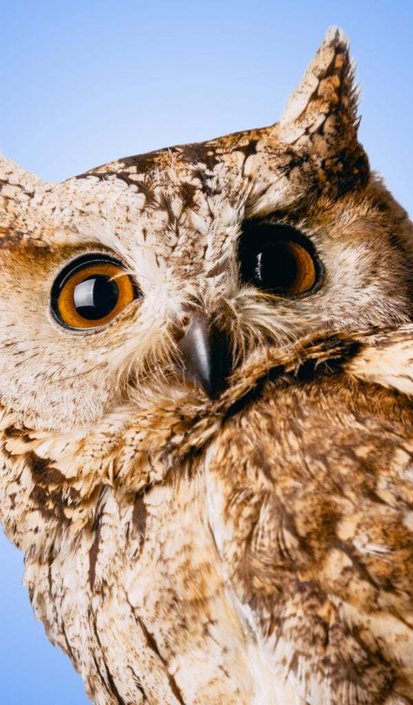 Wallpaper Large gray owl on a blue background