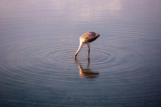 Wallpaper The bird lowered its head into the lake water