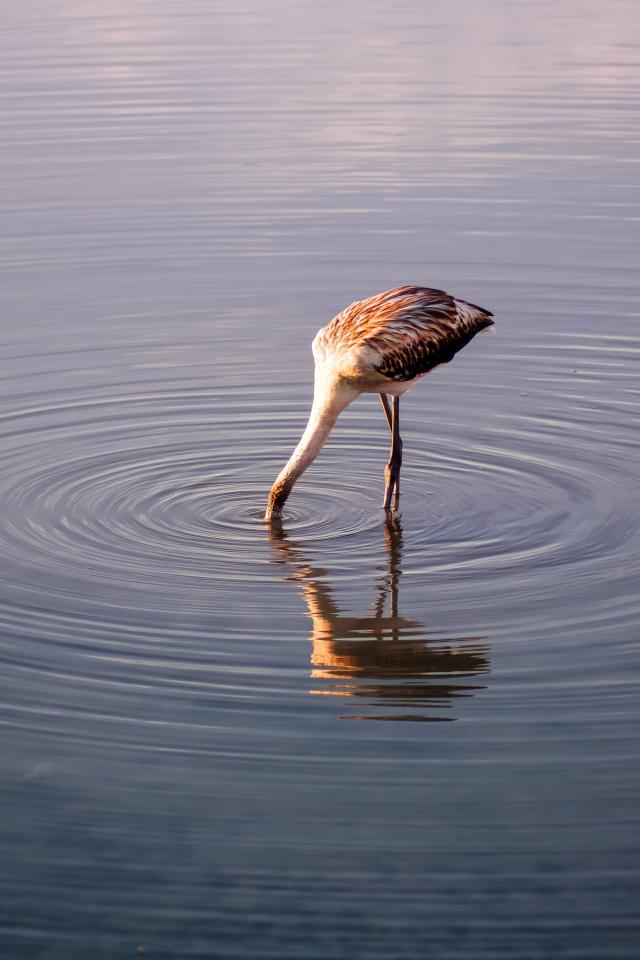 Wallpaper The bird lowered its head into the lake water