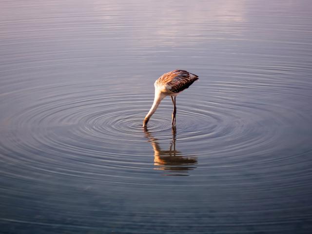 Wallpaper The bird lowered its head into the lake water