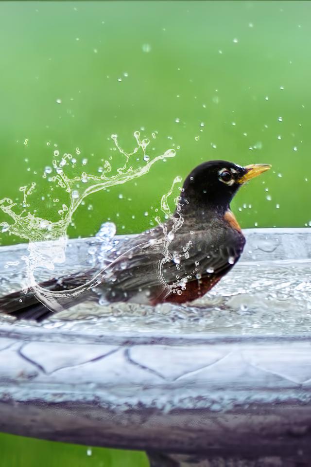 Wallpaper Bird bathes