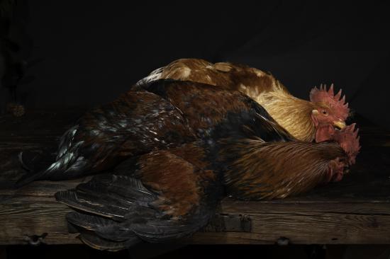 » Wallpaper Two brown roosters on the table