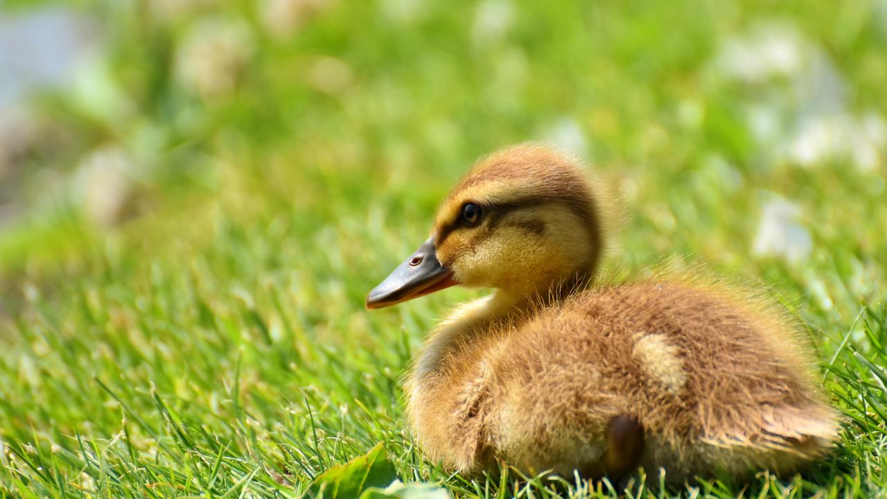 » Wallpaper Little duckling lies on green grass