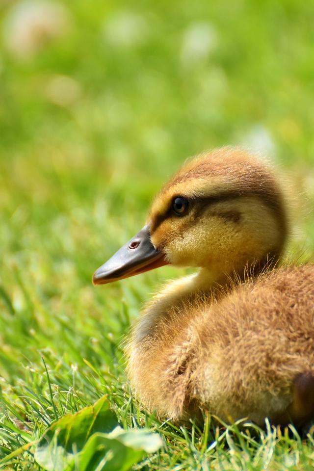 » Wallpaper Little duckling lies on green grass