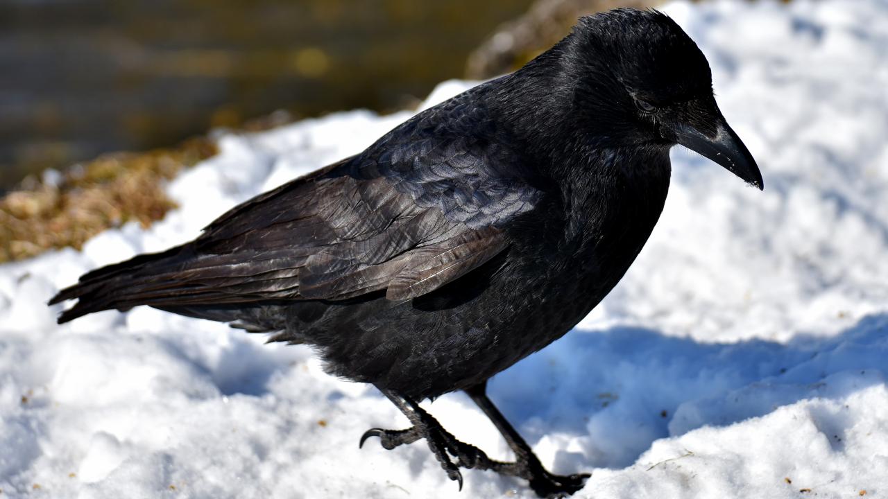 Wallpaper A black raven stands in the cold snow