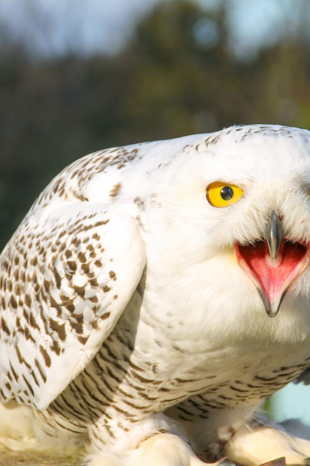 Wallpaper Large snowy owl with open beak