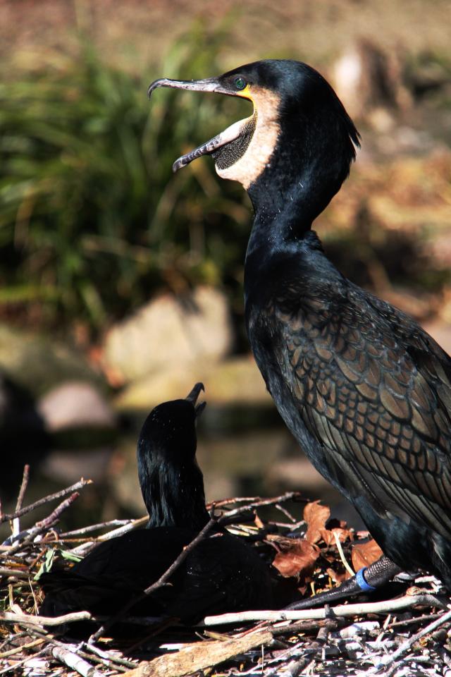 Wallpaper Mountain cormorant sits on a nest by the pond