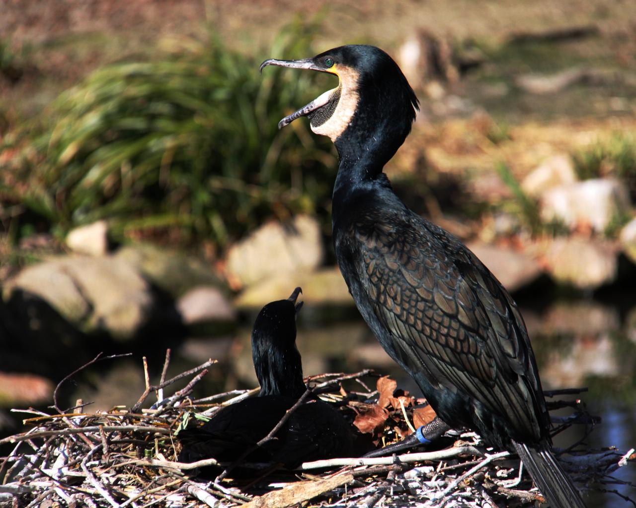 Wallpaper Mountain cormorant sits on a nest by the pond